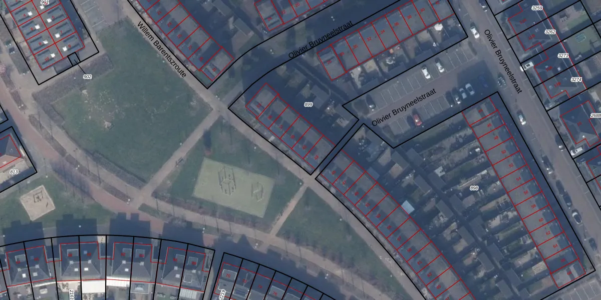 Het perceel waarop Willem Barentszroute 41 staat heeft een oppervlakte van 1966 m². Dit is een zeer groot perceel. De perceeloppervlakte wordt geregistreerd door het Kadaster. Gedetailleerde informatie over de maten van dit perceel kunt u vinden in het rapport Kadastrale kaart met maatvoering van Willem Barentszroute 41.