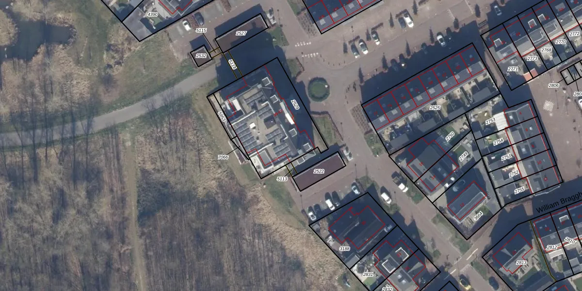 Het perceel waarop William Braggstraat 59 staat heeft een oppervlakte van 856 m². Dit is een groot perceel. De perceeloppervlakte wordt geregistreerd door het Kadaster. Gedetailleerde informatie over de maten van dit perceel kunt u vinden in het rapport Kadastrale kaart met maatvoering van William Braggstraat 59.