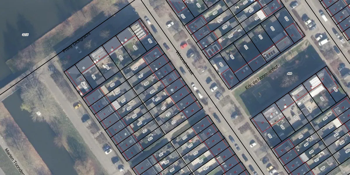 Gebruik de zoekbalk of klik op een perceel voor informatie over de adressen binnen dit perceel.