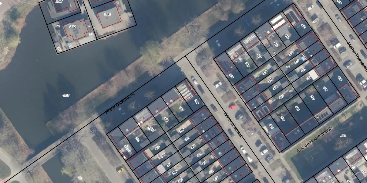 Gebruik de zoekbalk of klik op een perceel voor informatie over de adressen binnen dit perceel.
