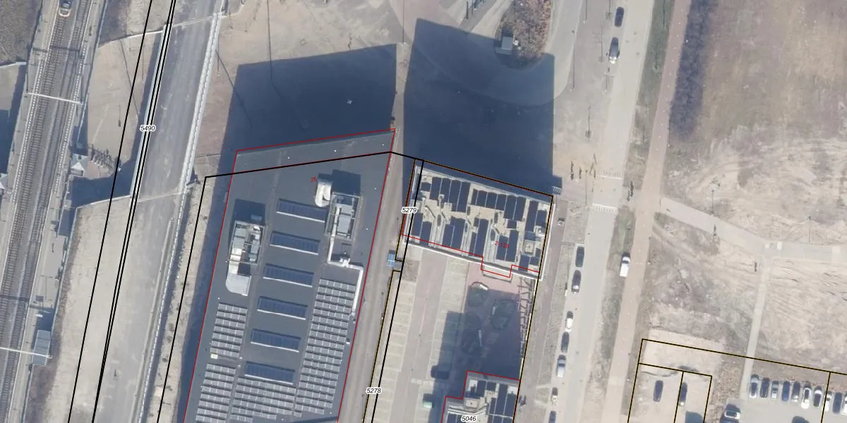 Het perceel waarop het adres ligt is AMR04-W-5046. De afkorting 'AMR04' staat voor kadastrale gemeente Almere. De oppervlakte van het perceel is 3612 m². Dat is groter dan gemiddeld in Almere, waar de gemiddelde perceeloppervlakte op 3327,75 m² ligt. De grootste perceeloppervlakte in de kadastrale gemeente is 32,12 km². De kleinste oppervlakte bedraagt 0 m². Op het perceel liggen in totaal 142 adressen. In de Basisregistratie Kadaster (BRK) werden de grenzen van het perceel geregistreerd op 19-08-2022.