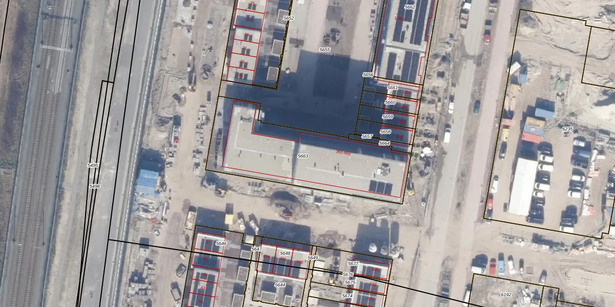 Het perceel waarop het adres ligt is AMR04-W-5663. De afkorting 'AMR04' staat voor kadastrale gemeente Almere. Het perceel is 1262 m² groot. Dat is kleiner dan de gemiddelde perceeloppervlakte in Almere, dat op 3327,75 m² ligt. Het kleinste perceel in de kadastrale gemeente is 0 m² groot. De grootste perceeloppervlakte is 32,12 km². Er zijn 66 adressen aanwezig op het perceel. In de Basisregistratie Kadaster (BRK) werden de grenzen van het perceel geregistreerd op 28-03-2024.