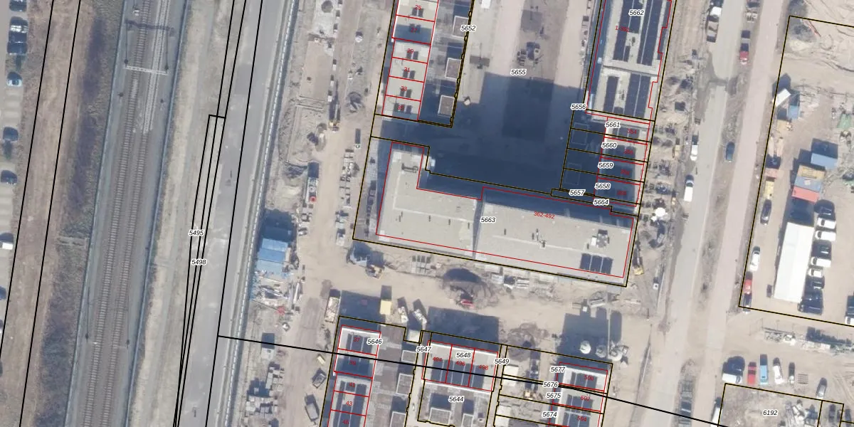 Het perceel waarop het adres ligt is AMR04-W-5663. De afkorting 'AMR04' staat voor kadastrale gemeente Almere. Het perceel is 1262 m² groot. Dat is kleiner dan de gemiddelde perceeloppervlakte in Almere, dat op 3327,75 m² ligt. Het kleinste perceel in de kadastrale gemeente is 0 m² groot. De grootste perceeloppervlakte is 32,12 km². Er zijn 66 adressen aanwezig op het perceel. In de Basisregistratie Kadaster (BRK) werden de grenzen van het perceel geregistreerd op 28-03-2024.