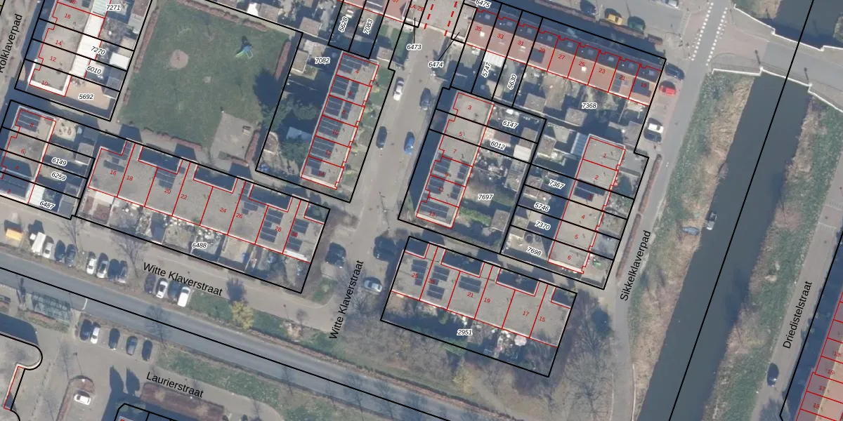 Het perceel waarop Witte Klaverstraat 13 staat heeft een oppervlakte van 580 m². Dit is een groot perceel. De perceeloppervlakte wordt geregistreerd door het Kadaster. Gedetailleerde informatie over de maten van dit perceel kunt u vinden in het rapport Kadastrale kaart met maatvoering van Witte Klaverstraat 13.