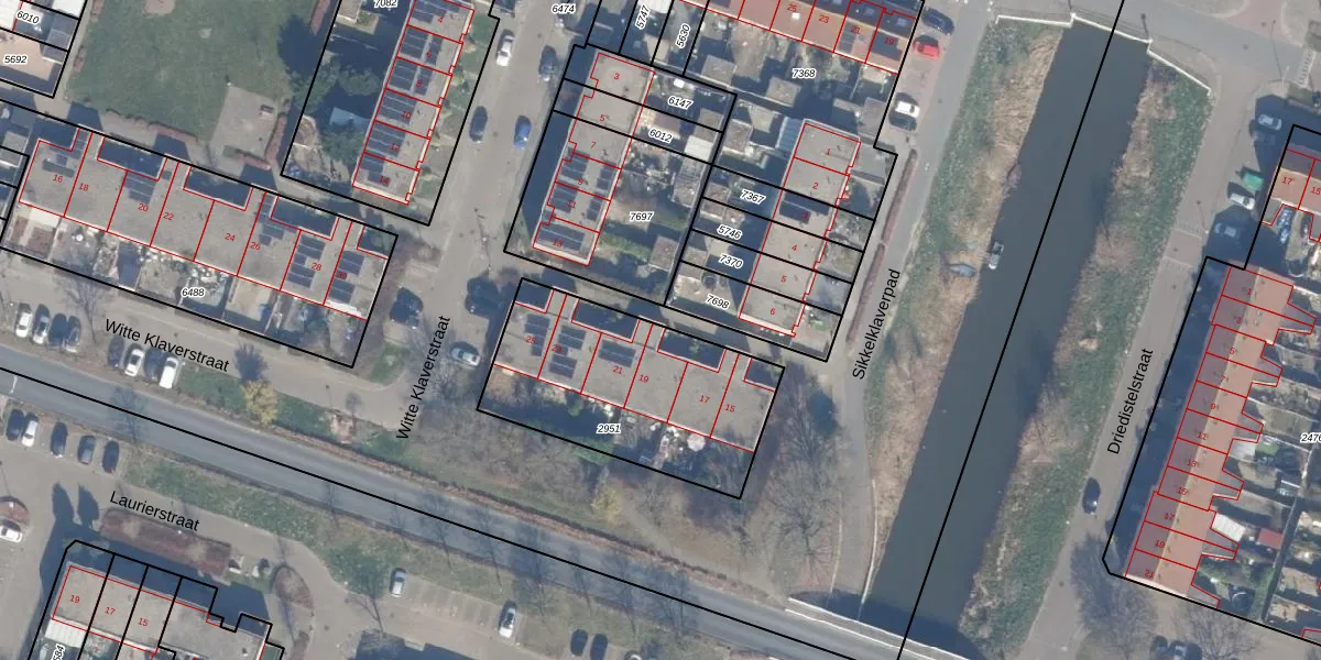 Het perceel waarop Witte Klaverstraat 19 staat heeft een oppervlakte van 883 m². Dit is een groot perceel. De perceeloppervlakte wordt geregistreerd door het Kadaster. Gedetailleerde informatie over de maten van dit perceel kunt u vinden in het rapport Kadastrale kaart met maatvoering van Witte Klaverstraat 19.