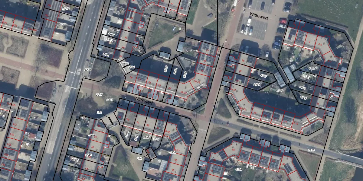 Het perceel waarop Wittewerf 32 staat heeft een oppervlakte van 726 m². Dit is een groot perceel. De perceeloppervlakte wordt geregistreerd door het Kadaster. Gedetailleerde informatie over de maten van dit perceel kunt u vinden in het rapport Kadastrale kaart met maatvoering van Wittewerf 32.