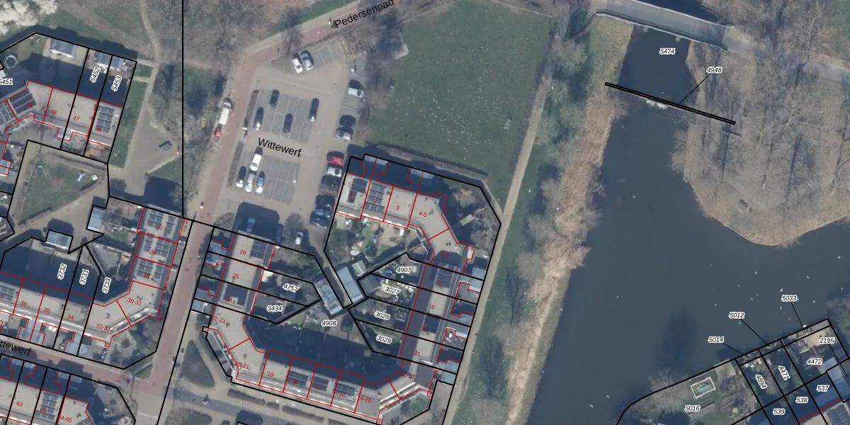 Het perceel waarop Wittewerf 4 staat heeft een oppervlakte van 2068 m². Dit is een zeer groot perceel. De perceeloppervlakte wordt geregistreerd door het Kadaster. Gedetailleerde informatie over de maten van dit perceel kunt u vinden in het rapport Kadastrale kaart met maatvoering van Wittewerf 4.
