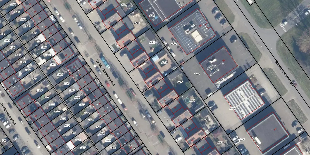 Het perceel waarop W.M. Dudokstraat 30 staat heeft een oppervlakte van 463 m². Dit is een groot perceel. De perceeloppervlakte wordt geregistreerd door het Kadaster. Gedetailleerde informatie over de maten van dit perceel kunt u vinden in het rapport Kadastrale kaart met maatvoering van W.M. Dudokstraat 30.