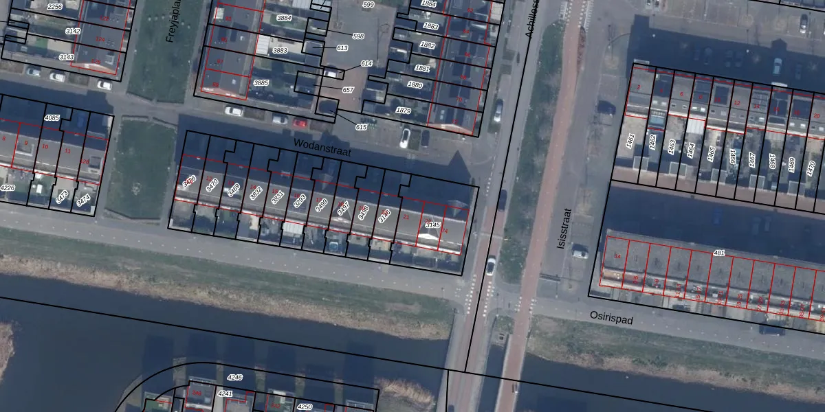 Wodanstraat 21 is gelegen op kadastraal perceel AMR04W3145. Deze kadastrale aanduiding is uniek en wordt gebruikt door het Kadaster om eigendomsrechten en andere zakelijke rechten vast te leggen. Het perceel maakt onderdeel uit van de kadastrale gemeente Almere.
