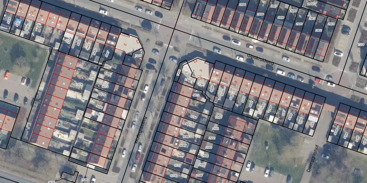 Gebruik de zoekbalk of klik op een perceel voor informatie over de adressen binnen dit perceel.