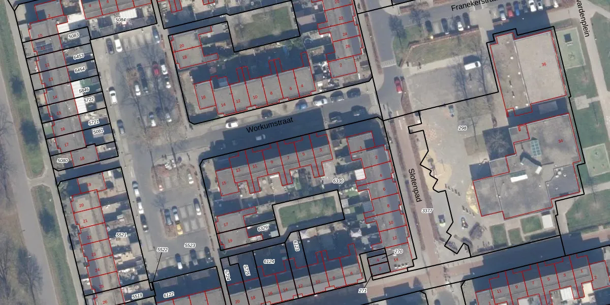 Workumstraat 5 is gelegen op kadastraal perceel AMR04K6330. Deze kadastrale aanduiding is uniek en wordt gebruikt door het Kadaster om eigendomsrechten en andere zakelijke rechten vast te leggen. Het perceel maakt onderdeel uit van de kadastrale gemeente Almere.