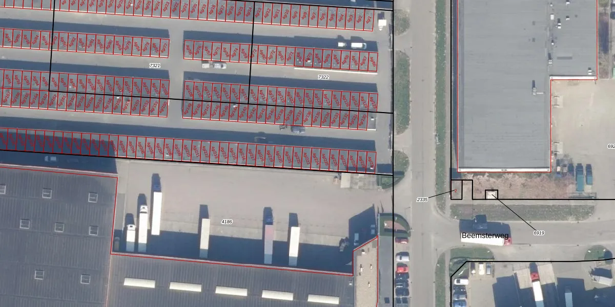 Het adres is gelegen op perceel 7246 in de sectie Q en de kadastrale gemeente Almere. De kadastrale aanduiding is aldus AMR04-Q-7246. Het perceel is met 4415 m² relatief groot. Het gemiddelde ligt in de kadastrale gemeente Almere op 3328,33 m². De grootste perceeloppervlakte in de kadastrale gemeente is 32,12 km². De kleinste oppervlakte bedraagt 0 m². Er zijn 127 adressen aanwezig op het perceel. De huidige grenzen van het perceel zijn digitaal in de Basisregistratie Kadaster (BRK) geregistreerd op 03-04-2013.