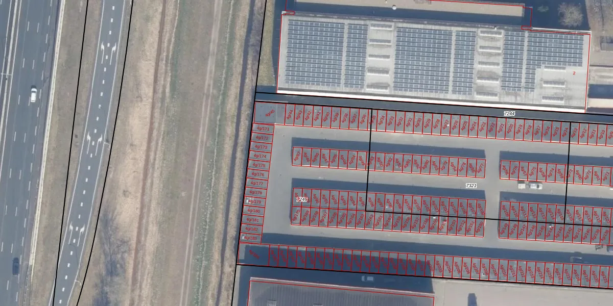Het adres is gelegen op perceel 7246 in de sectie Q en de kadastrale gemeente Almere. De kadastrale aanduiding is aldus AMR04-Q-7246. Het perceel is met 4415 m² relatief groot. Het gemiddelde ligt in de kadastrale gemeente Almere op 3328,33 m². Het kleinste perceel in de kadastrale gemeente is 0 m² groot. De grootste perceeloppervlakte is 32,12 km². Er zijn 127 adressen aanwezig op het perceel. De huidige grenzen van het perceel zijn digitaal in de Basisregistratie Kadaster (BRK) geregistreerd op 03-04-2013.