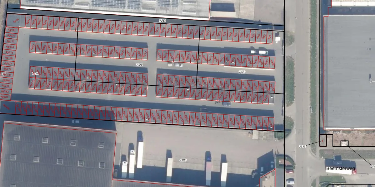 Het adres is gelegen op perceel 7246 in de sectie Q en de kadastrale gemeente Almere. De kadastrale aanduiding is aldus AMR04-Q-7246. Het perceel is met 4415 m² relatief groot. Het gemiddelde ligt in de kadastrale gemeente Almere op 3328,33 m². Het kleinste perceel in de kadastrale gemeente is 0 m² groot. De grootste perceeloppervlakte is 32,12 km². Op het perceel liggen in totaal 127 adressen. De huidige grenzen van het perceel zijn digitaal in de Basisregistratie Kadaster (BRK) geregistreerd op 03-04-2013.