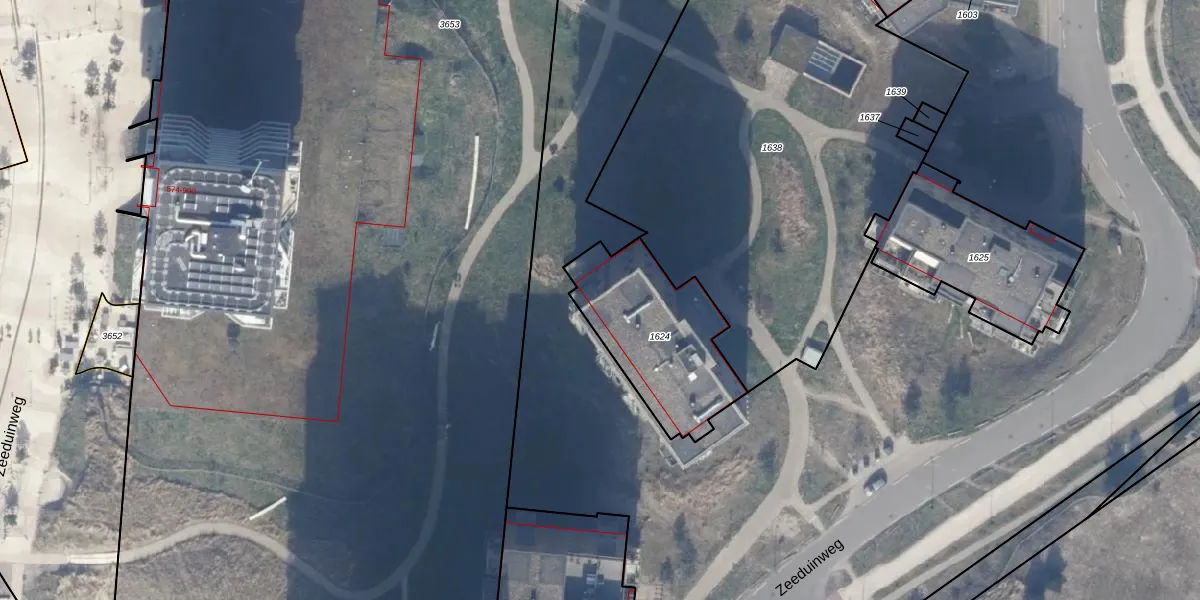 Zeeduinweg 184 is gelegen op kadastraal perceel AMR04F1624. Deze kadastrale aanduiding is uniek en wordt gebruikt door het Kadaster om eigendomsrechten en andere zakelijke rechten vast te leggen. Het perceel maakt onderdeel uit van de kadastrale gemeente Almere.