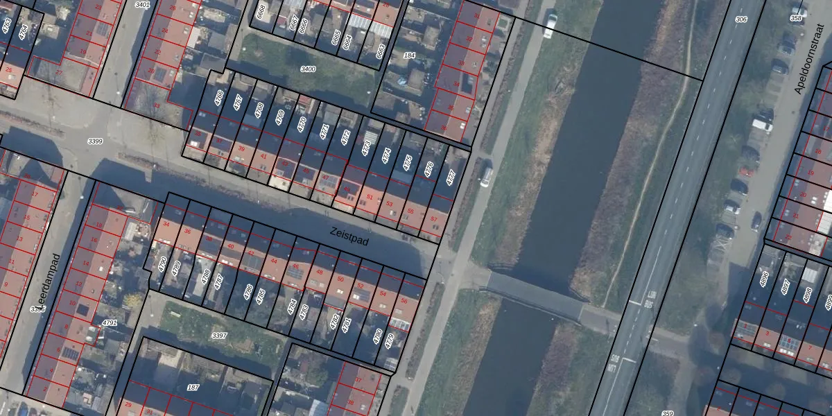 Gebruik de zoekbalk of klik op een perceel voor informatie over de adressen binnen dit perceel.
