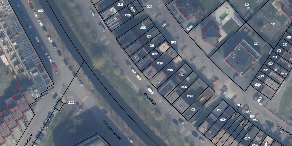 Zeussingel 45 is gelegen op kadastraal perceel AMR04W3908. Deze kadastrale aanduiding is uniek en wordt gebruikt door het Kadaster om eigendomsrechten en andere zakelijke rechten vast te leggen. Het perceel maakt onderdeel uit van de kadastrale gemeente Almere.