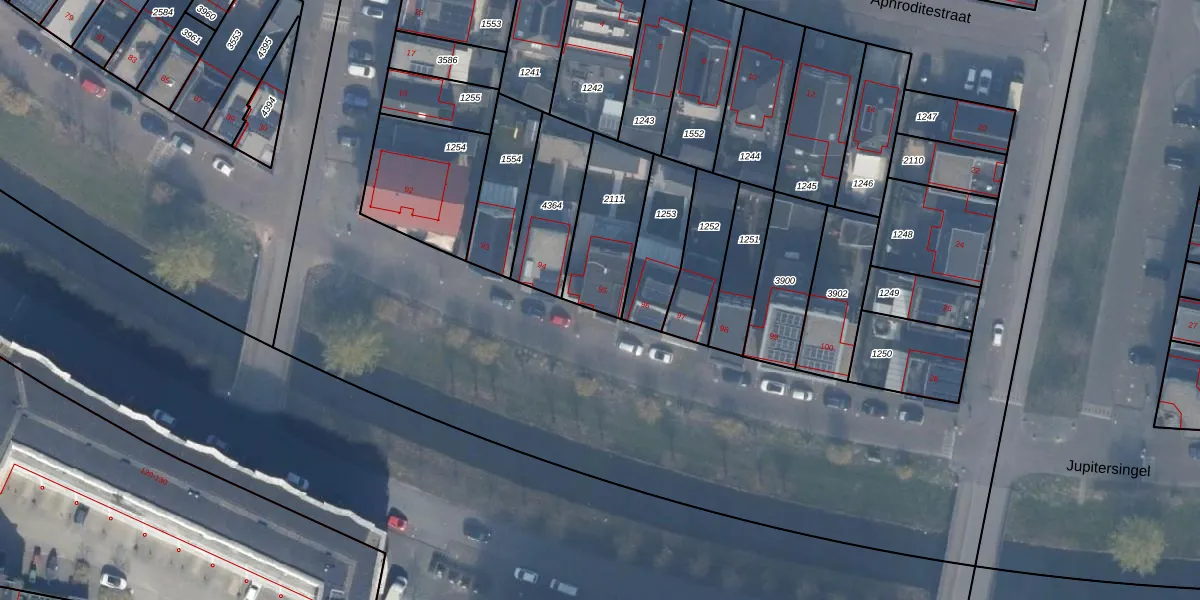 Het perceel waarop Zeussingel 95 staat heeft een oppervlakte van 296 m². Dit is een middelgroot perceel. De perceeloppervlakte wordt geregistreerd door het Kadaster. Gedetailleerde informatie over de maten van dit perceel kunt u vinden in het rapport Kadastrale kaart met maatvoering van Zeussingel 95.