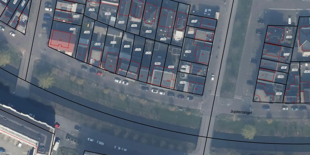 Gebruik de zoekbalk of klik op een perceel voor informatie over de adressen binnen dit perceel.