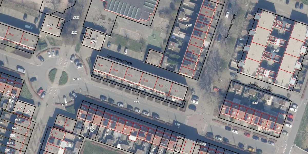 Het perceel waarop Zilvermosstraat 17 staat heeft een oppervlakte van 731 m². Dit is een groot perceel. De perceeloppervlakte wordt geregistreerd door het Kadaster. Gedetailleerde informatie over de maten van dit perceel kunt u vinden in het rapport Kadastrale kaart met maatvoering van Zilvermosstraat 17.