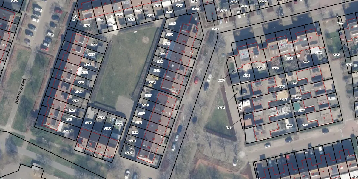 Het adres ligt op het perceel AMR04-O-2734, dat zich in de kadastrale gemeente Almere bevindt. De gemiddelde perceelgrootte in Almere is 3328,15 m². Dit perceel is kleiner: de perceeloppervlakte bedraagt 159 m². Het kleinste perceel in de kadastrale gemeente is 0 m² groot. De grootste perceeloppervlakte is 32,12 km². Dit is het enige adres dat aanwezig is op het perceel. De huidige grenzen van het perceel zijn digitaal in de Basisregistratie Kadaster (BRK) geregistreerd op 17-12-2008.