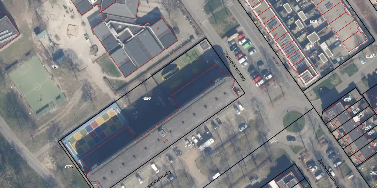 Zonnebloemweg 76 is gelegen op kadastraal perceel AMR04N5574. Deze kadastrale aanduiding is uniek en wordt gebruikt door het Kadaster om eigendomsrechten en andere zakelijke rechten vast te leggen. Het perceel maakt onderdeel uit van de kadastrale gemeente Almere.