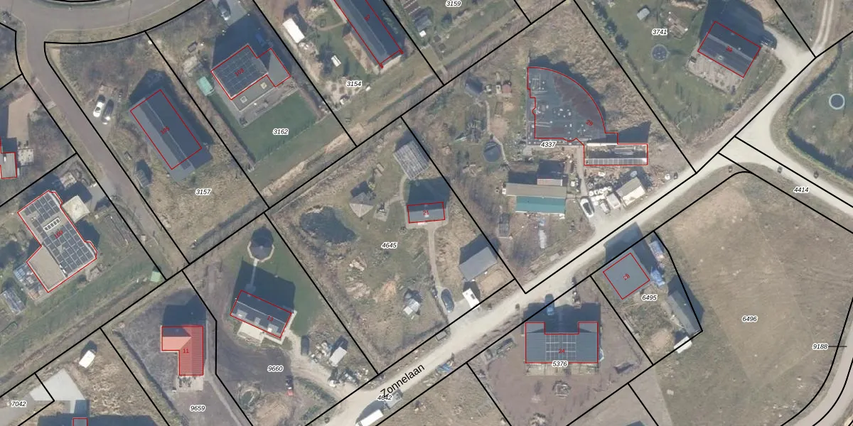 Zonnelaan 21 is gelegen op kadastraal perceel AMR04C4645. Deze kadastrale aanduiding is uniek en wordt gebruikt door het Kadaster om eigendomsrechten en andere zakelijke rechten vast te leggen. Het perceel maakt onderdeel uit van de kadastrale gemeente Almere.