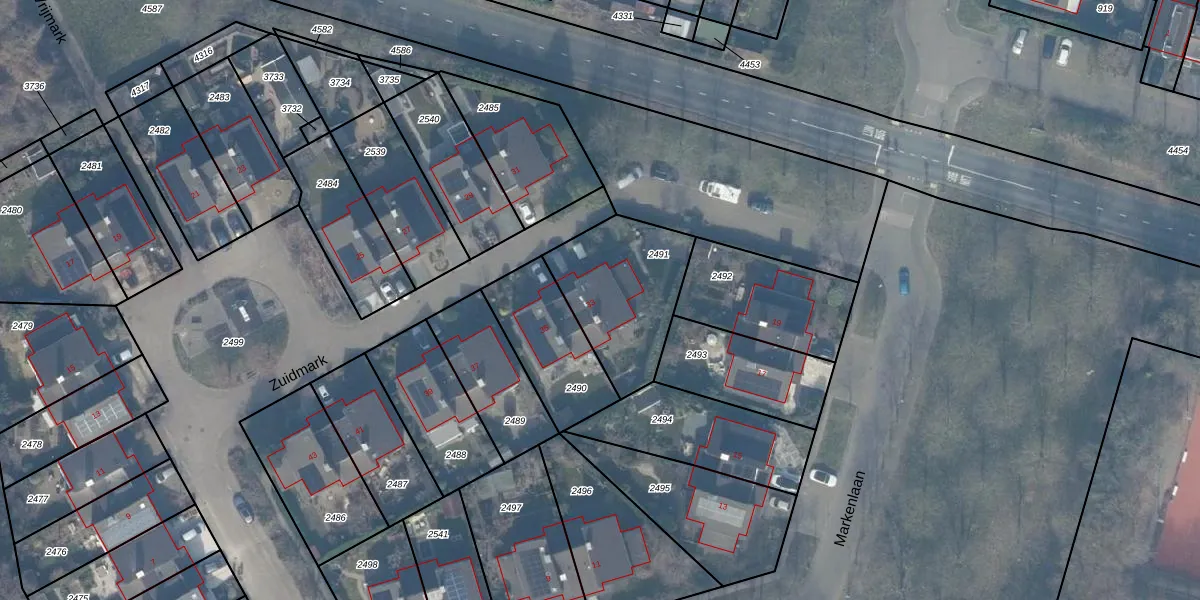 Het perceel waarop Zuidmark 33 staat heeft een oppervlakte van 453 m². Dit is een groot perceel. De perceeloppervlakte wordt geregistreerd door het Kadaster. Gedetailleerde informatie over de maten van dit perceel kunt u vinden in het rapport Kadastrale kaart met maatvoering van Zuidmark 33.