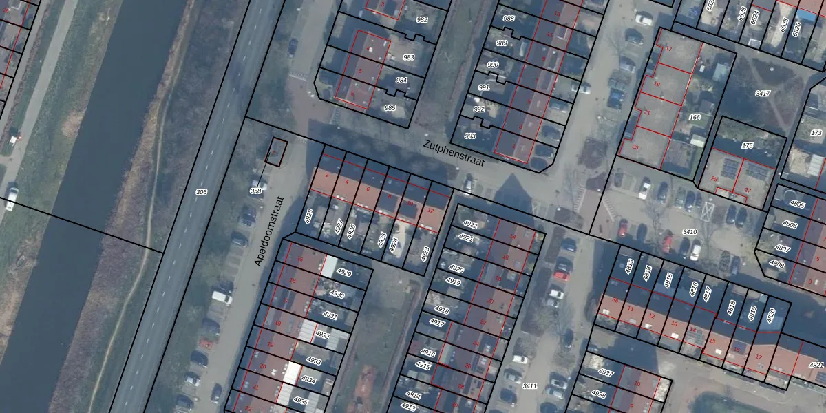 Zutphenstraat 10 is gelegen op kadastraal perceel AMR04K4924. Deze kadastrale aanduiding is uniek en wordt gebruikt door het Kadaster om eigendomsrechten en andere zakelijke rechten vast te leggen. Het perceel maakt onderdeel uit van de kadastrale gemeente Almere.