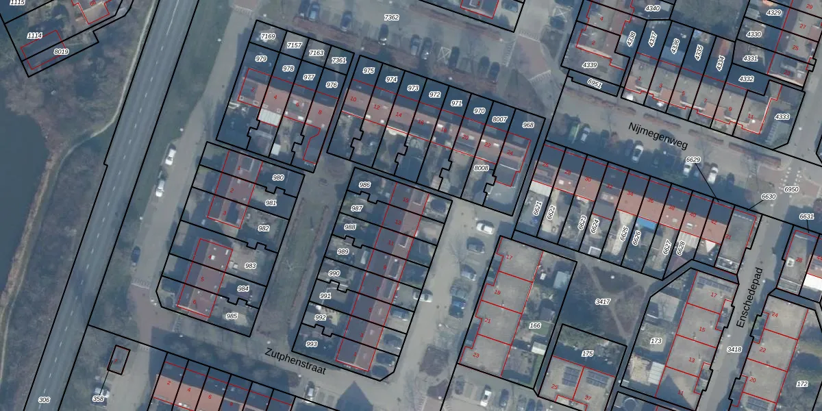 Zutphenstraat 15 is gelegen op kadastraal perceel AMR04K986. Deze kadastrale aanduiding is uniek en wordt gebruikt door het Kadaster om eigendomsrechten en andere zakelijke rechten vast te leggen. Het perceel maakt onderdeel uit van de kadastrale gemeente Almere.