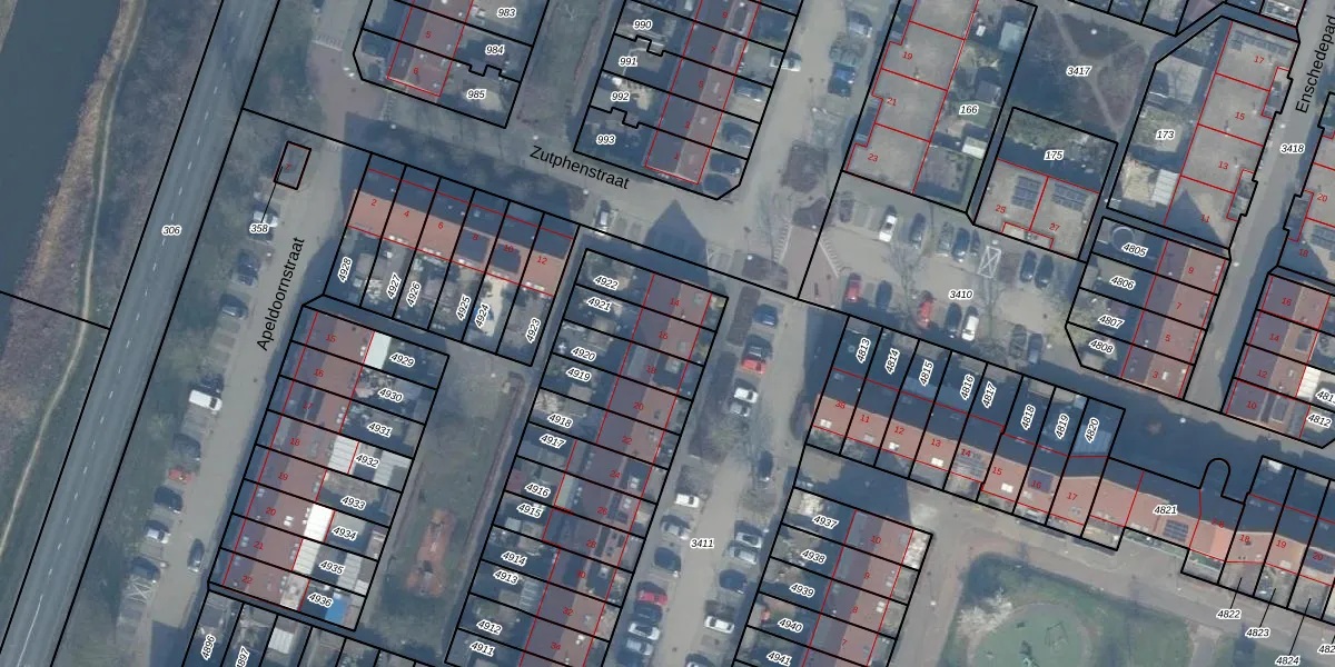 Zutphenstraat 16 is gelegen op kadastraal perceel AMR04K4921. Deze kadastrale aanduiding is uniek en wordt gebruikt door het Kadaster om eigendomsrechten en andere zakelijke rechten vast te leggen. Het perceel maakt onderdeel uit van de kadastrale gemeente Almere.