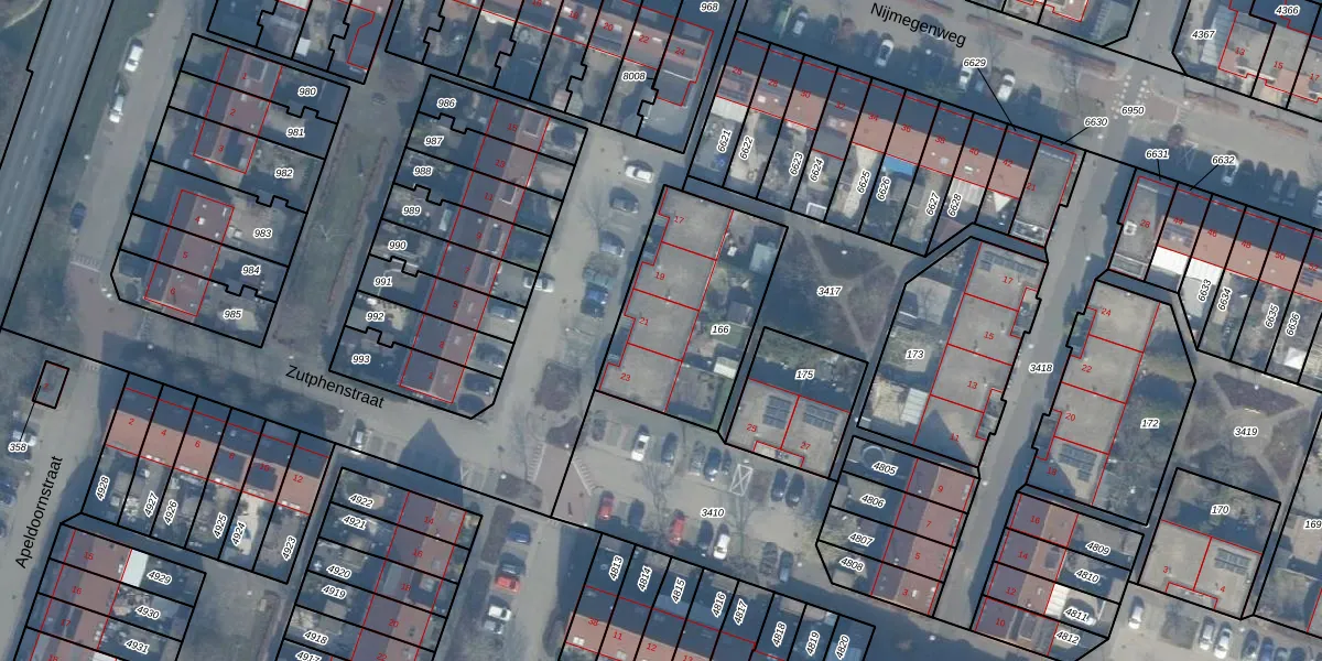 Het perceel waarop Zutphenstraat 21 staat heeft een oppervlakte van 647 m². Dit is een groot perceel. De perceeloppervlakte wordt geregistreerd door het Kadaster. Gedetailleerde informatie over de maten van dit perceel kunt u vinden in het rapport Kadastrale kaart met maatvoering van Zutphenstraat 21.