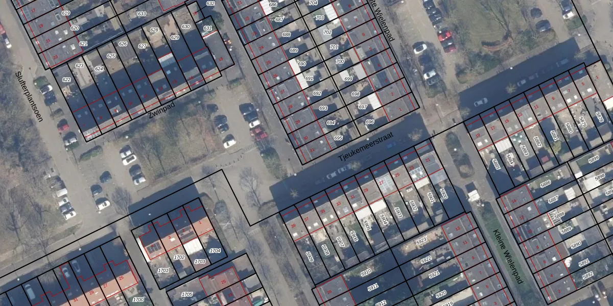 Gebruik de zoekbalk of klik op een perceel voor informatie over de adressen binnen dit perceel.