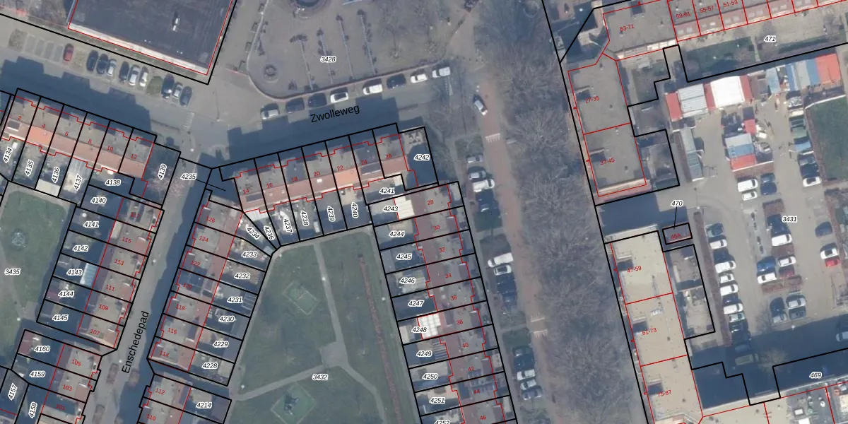 Zwolleweg 28 is gelegen op kadastraal perceel AMR04K4243. Deze kadastrale aanduiding is uniek en wordt gebruikt door het Kadaster om eigendomsrechten en andere zakelijke rechten vast te leggen. Het perceel maakt onderdeel uit van de kadastrale gemeente Almere.