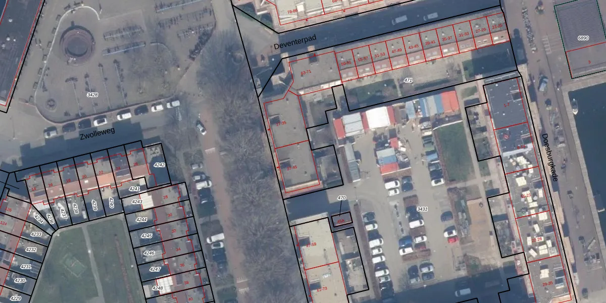 Het perceel waarop Zwolleweg 45 staat heeft een oppervlakte van 2206 m². Dit is een zeer groot perceel. De perceeloppervlakte wordt geregistreerd door het Kadaster. Gedetailleerde informatie over de maten van dit perceel kunt u vinden in het rapport Kadastrale kaart met maatvoering van Zwolleweg 45.