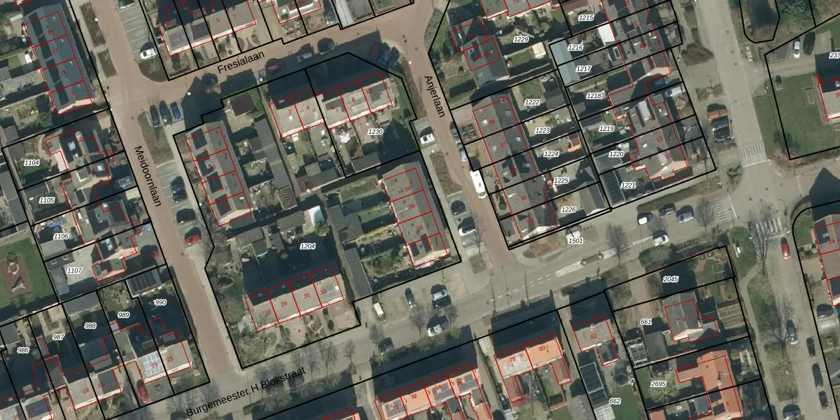 Anjerlaan 36 is gelegen op kadastraal perceel WDC00E1204. Deze kadastrale aanduiding is uniek en wordt gebruikt door het Kadaster om eigendomsrechten en andere zakelijke rechten vast te leggen. Het perceel maakt onderdeel uit van de kadastrale gemeente Woudrichem.