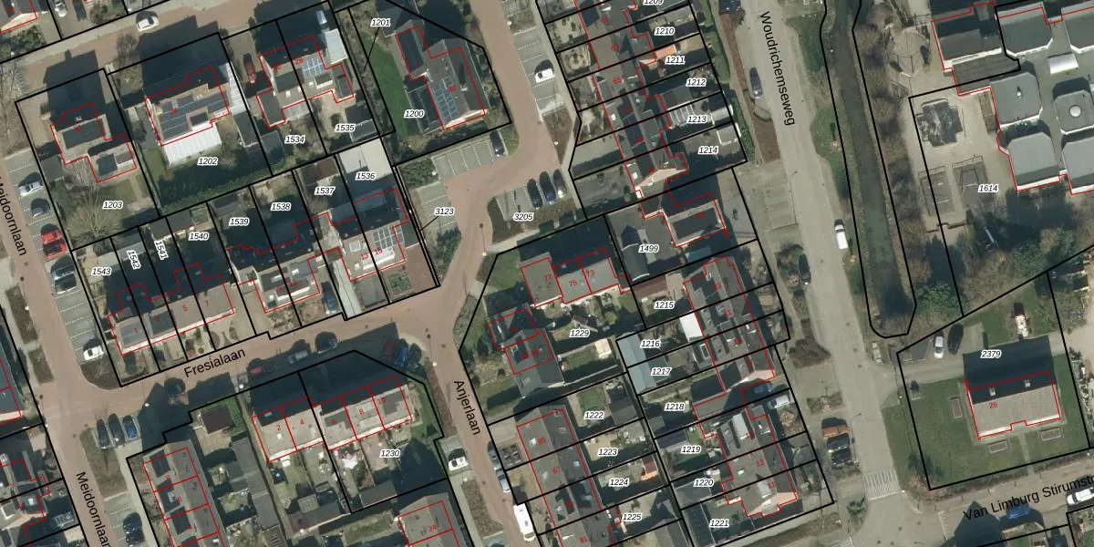 Anjerlaan 77 is gelegen op kadastraal perceel WDC00E1229. Deze kadastrale aanduiding is uniek en wordt gebruikt door het Kadaster om eigendomsrechten en andere zakelijke rechten vast te leggen. Het perceel maakt onderdeel uit van de kadastrale gemeente Woudrichem.