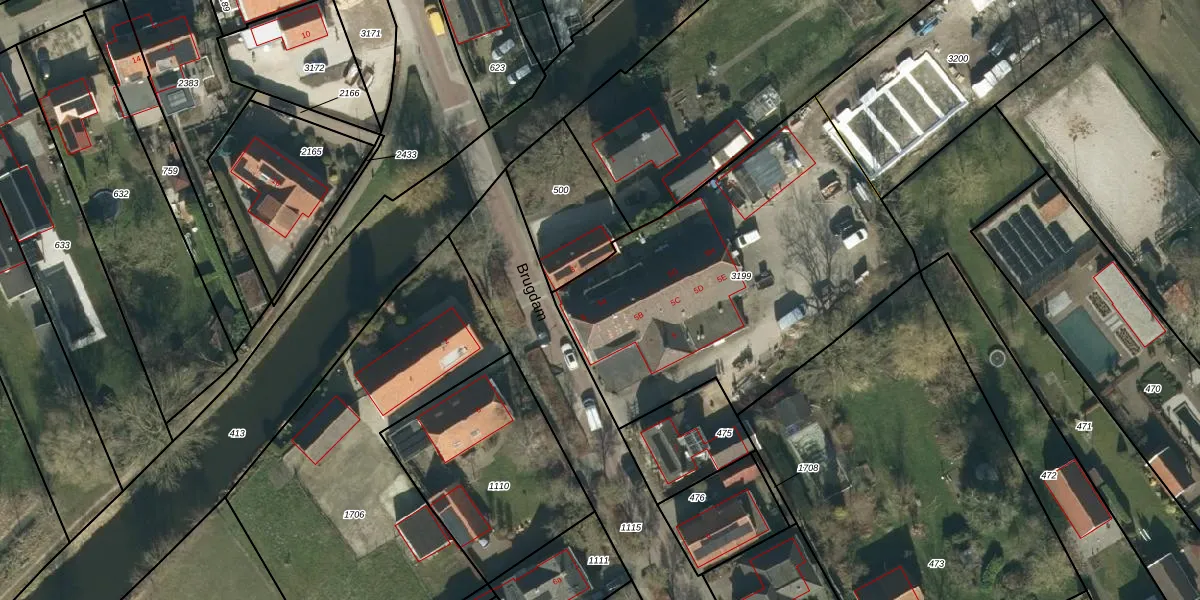 Het perceel waarop Brugdam 5-a staat heeft een oppervlakte van 1778 m². Dit is een zeer groot perceel. De perceeloppervlakte wordt geregistreerd door het Kadaster. Gedetailleerde informatie over de maten van dit perceel kunt u vinden in het rapport Kadastrale kaart met maatvoering van Brugdam 5-a.