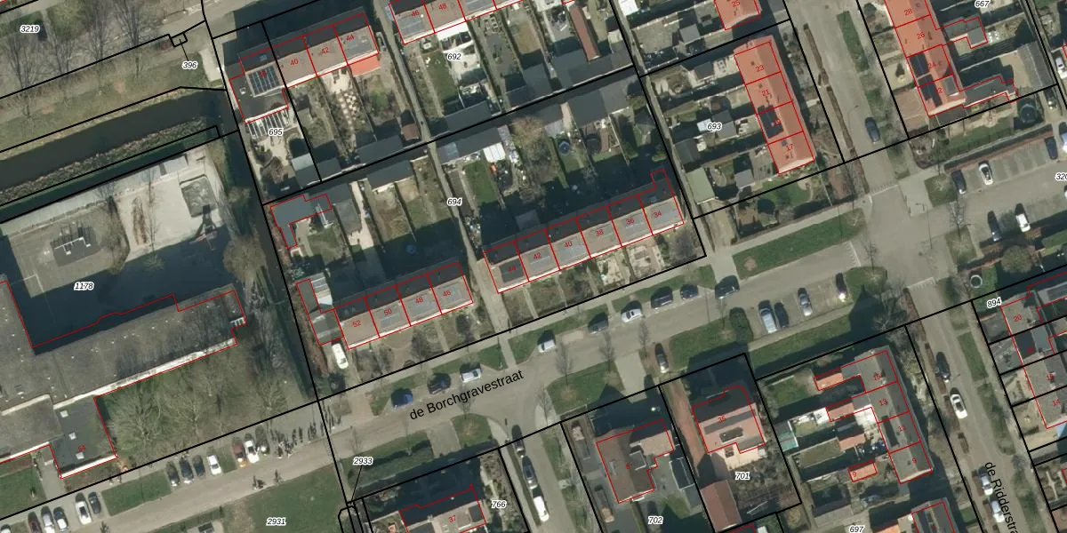 de Borchgravestraat 42 is gelegen op kadastraal perceel WDC00E694. Deze kadastrale aanduiding is uniek en wordt gebruikt door het Kadaster om eigendomsrechten en andere zakelijke rechten vast te leggen. Het perceel maakt onderdeel uit van de kadastrale gemeente Woudrichem.