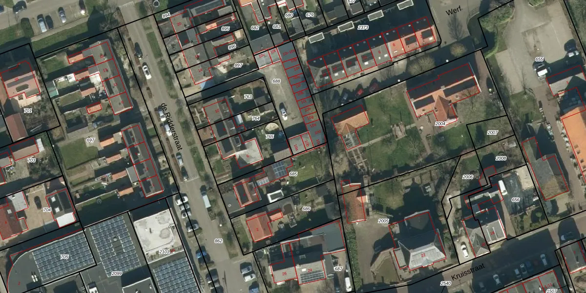 Het perceel waarop de Ridderstraat 10-a staat heeft een oppervlakte van 594 m². Dit is een groot perceel. De perceeloppervlakte wordt geregistreerd door het Kadaster. Gedetailleerde informatie over de maten van dit perceel kunt u vinden in het rapport Kadastrale kaart met maatvoering van de Ridderstraat 10-a.