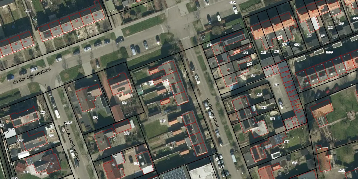 Het perceel waarop de Ridderstraat 11 staat heeft een oppervlakte van 1980 m². Dit is een zeer groot perceel. De perceeloppervlakte wordt geregistreerd door het Kadaster. Gedetailleerde informatie over de maten van dit perceel kunt u vinden in het rapport Kadastrale kaart met maatvoering van de Ridderstraat 11.