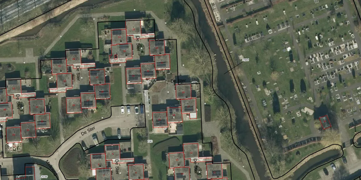 Het perceel waarop De Ster 18 staat heeft een oppervlakte van 8798 m². Dit is een zeer groot perceel. De perceeloppervlakte wordt geregistreerd door het Kadaster. Gedetailleerde informatie over de maten van dit perceel kunt u vinden in het rapport Kadastrale kaart met maatvoering van De Ster 18.