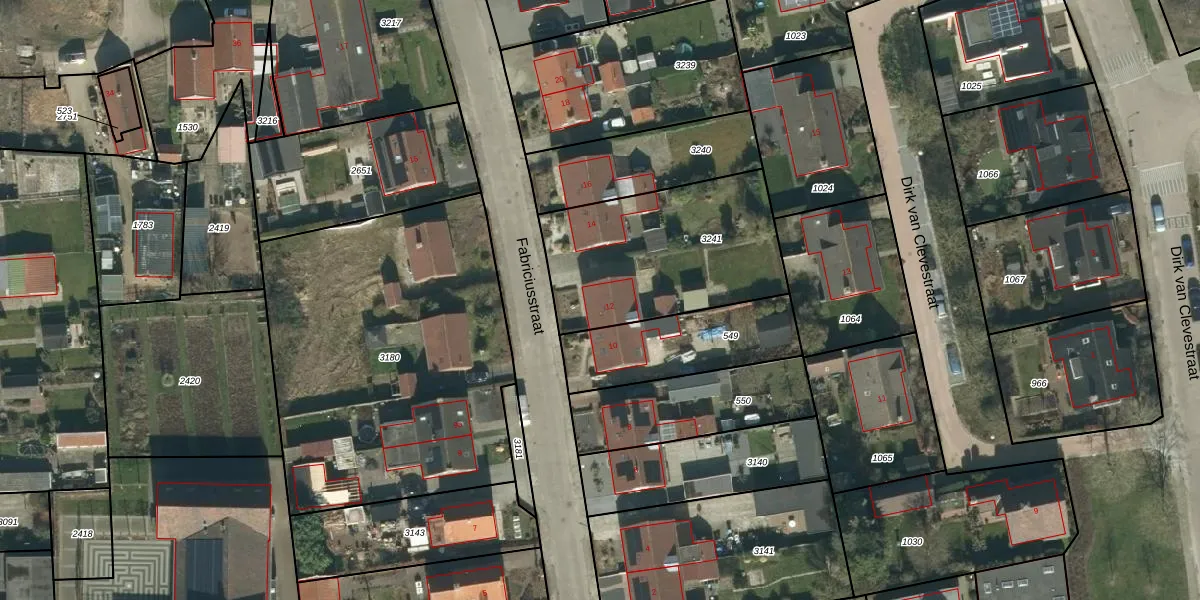 Fabriciusstraat 12 is gelegen op kadastraal perceel WDC00E3241. Deze kadastrale aanduiding is uniek en wordt gebruikt door het Kadaster om eigendomsrechten en andere zakelijke rechten vast te leggen. Het perceel maakt onderdeel uit van de kadastrale gemeente Woudrichem.
