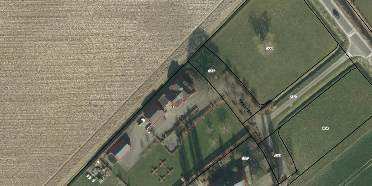 Het perceel waarop Het Leen 1 staat heeft een oppervlakte van 1,1 ha. Dit is een zeer groot perceel. De perceeloppervlakte wordt geregistreerd door het Kadaster. Gedetailleerde informatie over de maten van dit perceel kunt u vinden in het rapport Kadastrale kaart met maatvoering van Het Leen 1.