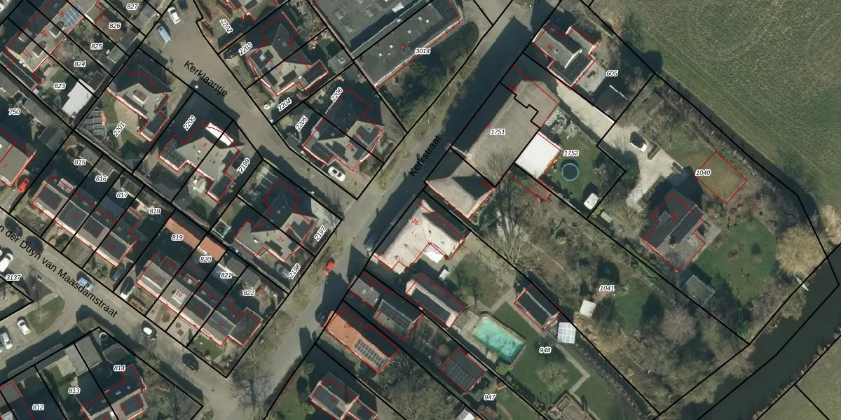 Het perceel waarop Kerkstraat 28 staat heeft een oppervlakte van 1640 m². Dit is een zeer groot perceel. De perceeloppervlakte wordt geregistreerd door het Kadaster. Gedetailleerde informatie over de maten van dit perceel kunt u vinden in het rapport Kadastrale kaart met maatvoering van Kerkstraat 28.