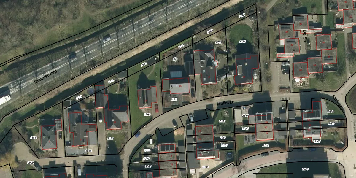Melkweg 15 is gelegen op kadastraal perceel WDC00E1016. Deze kadastrale aanduiding is uniek en wordt gebruikt door het Kadaster om eigendomsrechten en andere zakelijke rechten vast te leggen. Het perceel maakt onderdeel uit van de kadastrale gemeente Woudrichem.