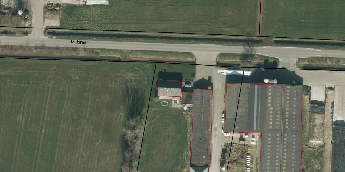 Het perceel waarop Midgraaf 18 staat heeft een oppervlakte van 2,7 ha. Dit is een zeer groot perceel. De perceeloppervlakte wordt geregistreerd door het Kadaster. Gedetailleerde informatie over de maten van dit perceel kunt u vinden in het rapport Kadastrale kaart met maatvoering van Midgraaf 18.