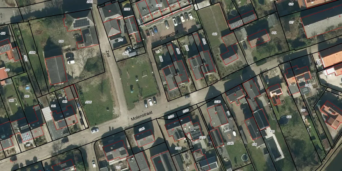 Het perceel waarop Molenstraat 17 staat heeft een oppervlakte van 286 m². Dit is een middelgroot perceel. De perceeloppervlakte wordt geregistreerd door het Kadaster. Gedetailleerde informatie over de maten van dit perceel kunt u vinden in het rapport Kadastrale kaart met maatvoering van Molenstraat 17.