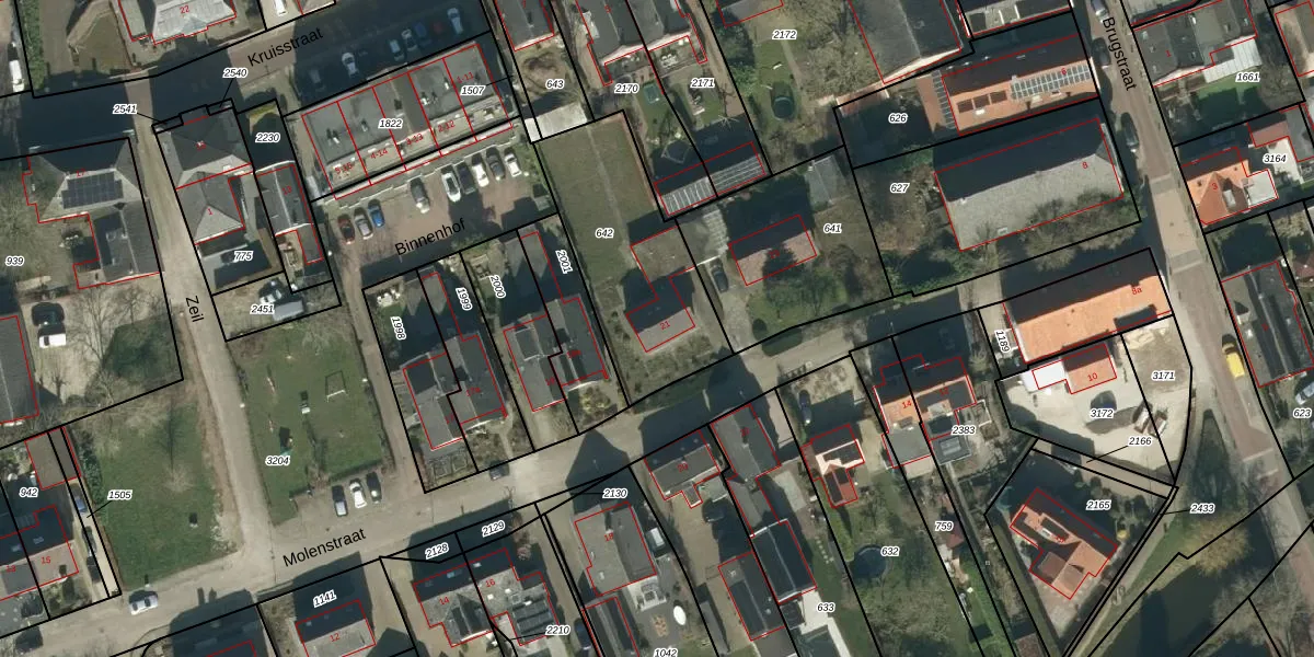 Molenstraat 21 is gelegen op kadastraal perceel WDC00E642. Deze kadastrale aanduiding is uniek en wordt gebruikt door het Kadaster om eigendomsrechten en andere zakelijke rechten vast te leggen. Het perceel maakt onderdeel uit van de kadastrale gemeente Woudrichem.