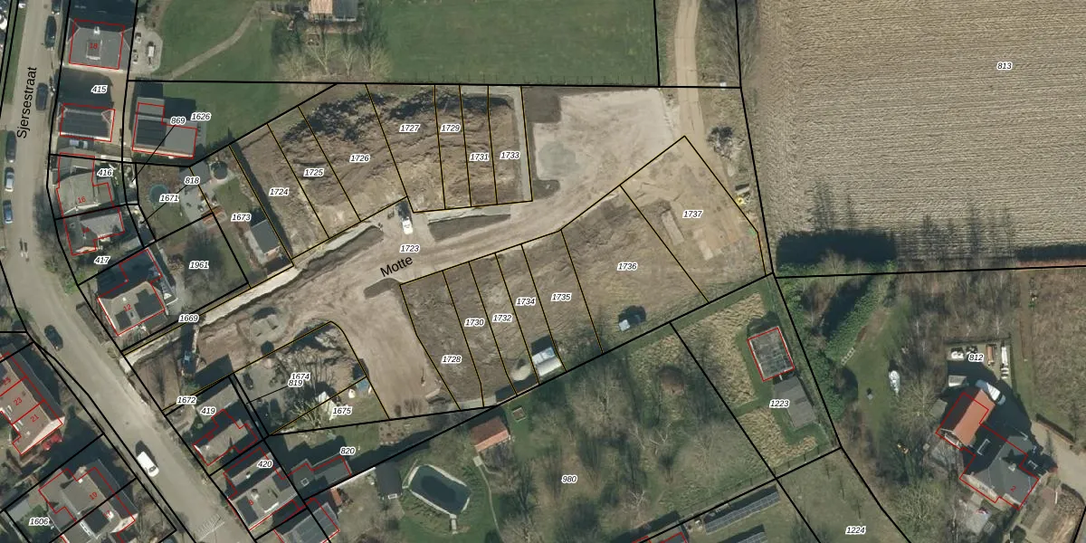 Het perceel waarop Motte 12 staat heeft een oppervlakte van 194 m². Dit is een middelgroot perceel. De perceeloppervlakte wordt geregistreerd door het Kadaster. Gedetailleerde informatie over de maten van dit perceel kunt u vinden in het rapport Kadastrale kaart met maatvoering van Motte 12.